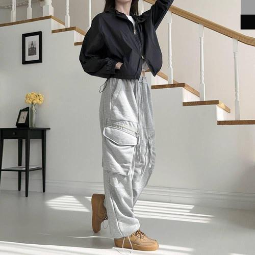 [sado]여성 지퍼카고 바지 스트링 트레이닝 와이드팬츠 면폴리혼방 WSF2009