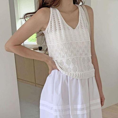 [옷자락] 여성 브이넥 민소매 니트 스카시 엑스끈