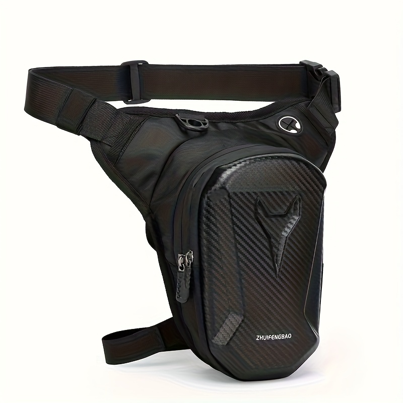 TEMU 모터사이클 레그백 - 헤드폰 잭, 조절 가능한 어깨끈, 더블 지퍼 수납공간 - 블랙 EVA 아웃도어 라이딩 벨트백