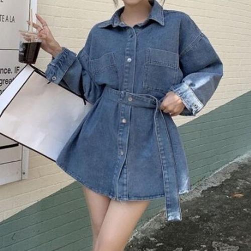 [엄지척]원피스 캐주얼 허리벨트 여성 데님 셔츠형 청원피스_19953190_667501