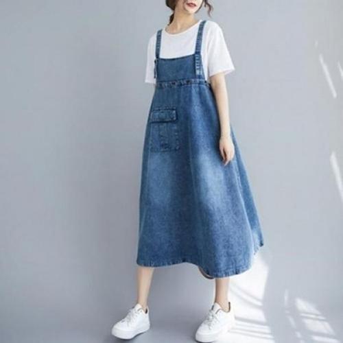 [오너클랜]인기상품 여성 멜빵 치마 청데님 미디 캐주얼 원피스