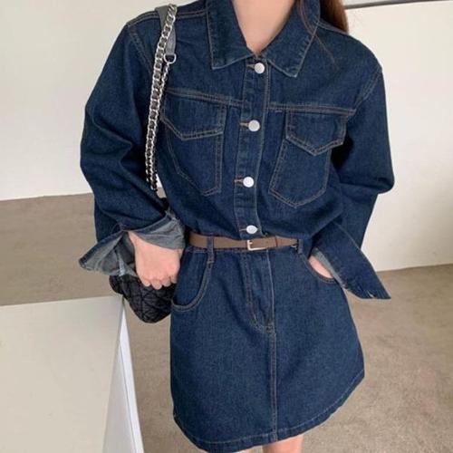 [엄지척]여자 2컬러 셔츠형 데님원피스 캐주얼 벨트 청원피스_19952617_667501