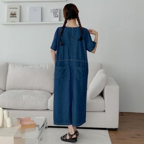 [보리보리/마미누리]빅사이즈 오버핏 데님 청 점프수트 임산부 원피스 임부복 8040