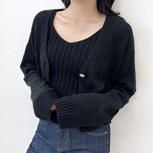 [엄지척]여자 블랙 브이넥 데일리 니트 나시 가디건 세트_19791929_667501