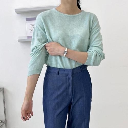 정상가:69,000원 ㅣ 무지 라운드넥 루즈핏 긴팔 니트 (XP4KT023L0)