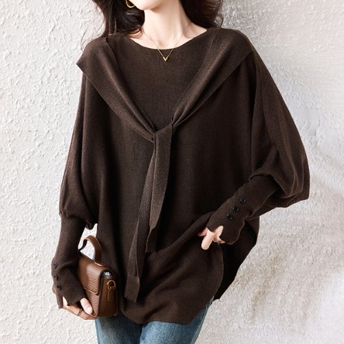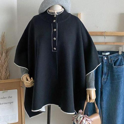 [신상오픈런]여성 키치 스타일 비스코스 터틀넥 가오리형 망토 가디건
