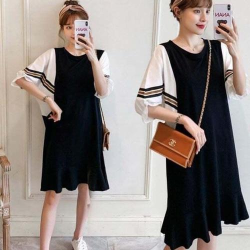 [셀럽하우스]여자 JWFH3189 레이어드 착시 트렌드 가오리 원피스 데일리 여