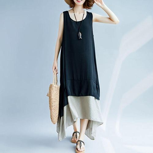 [셀럽하우스]여성 GTKK1891 여름 루즈핏 민소매 나시 가오리 배색 원피스