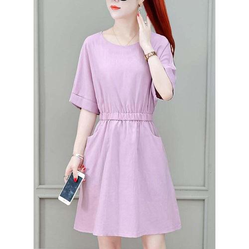 [셀럽하우스]여성 YMLF5382 여름 라운드넥 냉감 가오리 미니 반팔 원피스