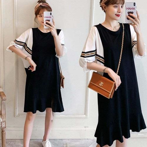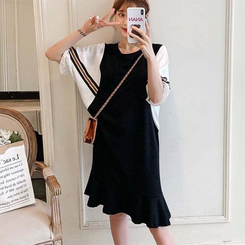 [오너클랜]인기상품 여자 레이어드 스타일 루즈핏 가오리 반팔 원피스 [WEBF710_250918]