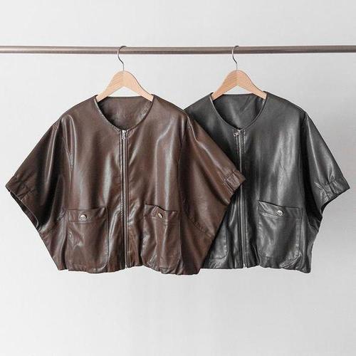 [옷자락] 여성 가죽 자켓 가을 노카라 박시핏 포켓 가오리핏