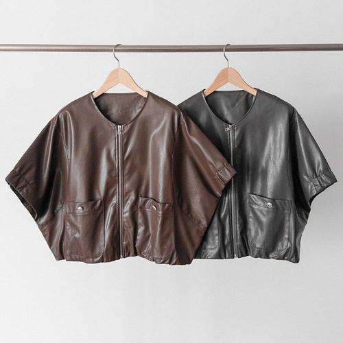 [다잇템]여성 카라없는 FW 레더 재킷 박스핏 가오리핏