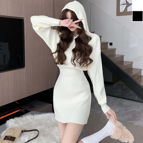 [셀럽하우스]골지 IZHU8325 미니 니트 트렌드 후드 원피스 데일리 봄가을 데