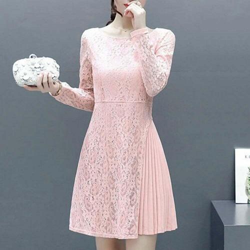 [셀럽하우스]여성 CQBX6407 가을 간절기 주름 포인트 레이스 미니 원피스
