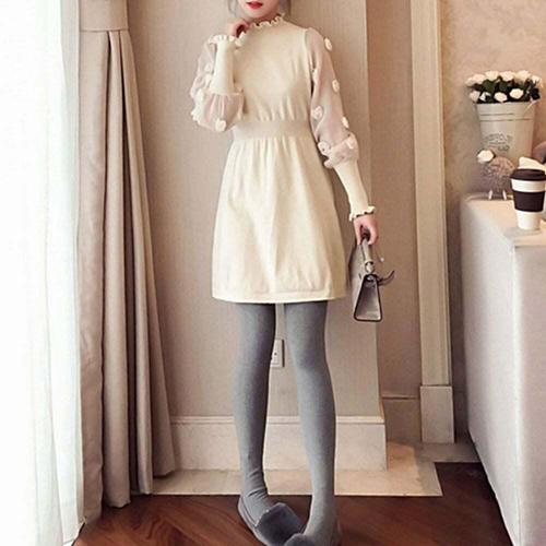 [셀럽하우스]여성 ZZXW4972 가을 간절기 메쉬 시스루 소매 니트 미니 원피스