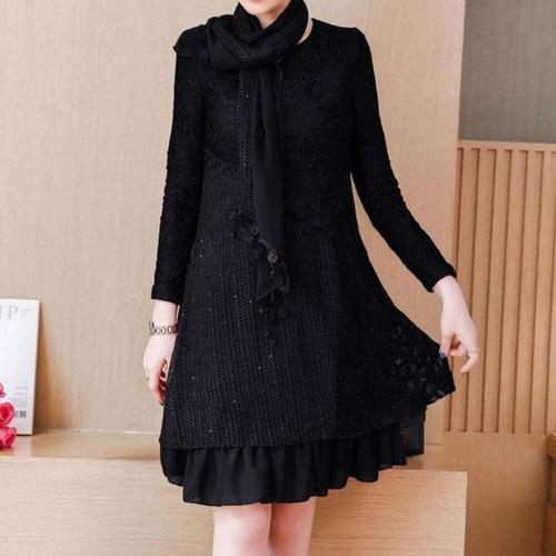 [셀럽하우스]여성 FGFK2567 가을 간절기 레이스 기모 미니 스카프 원피스
