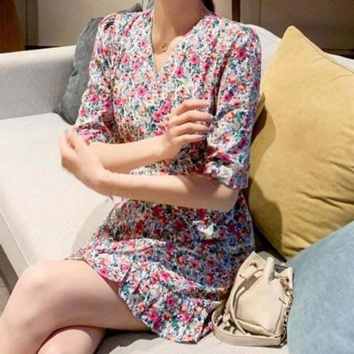 [셀럽하우스]속치마 OGPW7629 원피스 플라워 7부소매 + 프릴 가을원피스 봄