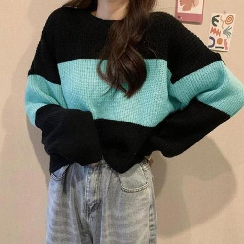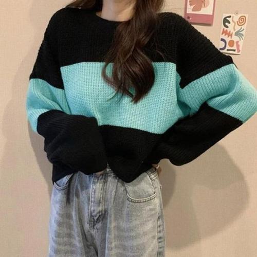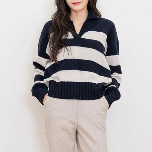 [엄지척]여성 방한 가을 스타일 겨울 크롭기장 줄무늬 니트티_19645037_667501