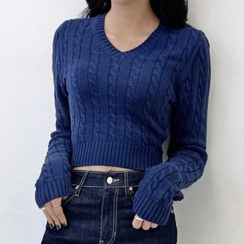 [엄지척]브이넥 여자 니트티셔츠 세미크롭 꽈베기 가을 데일리_19679852_667501