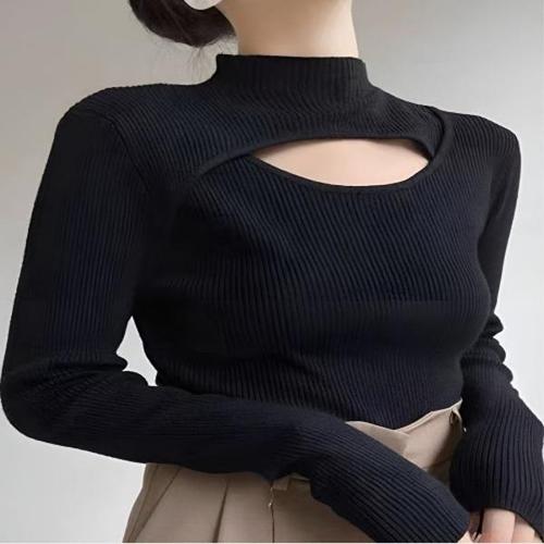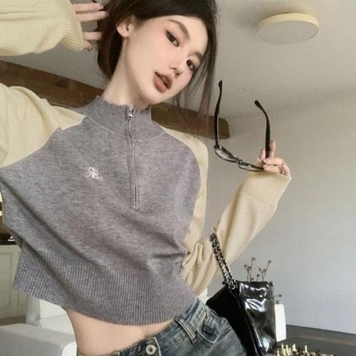 여자 부드러운 러블리 세미크롭 니트 가을 티셔츠 (KYR-WFFVQZY)