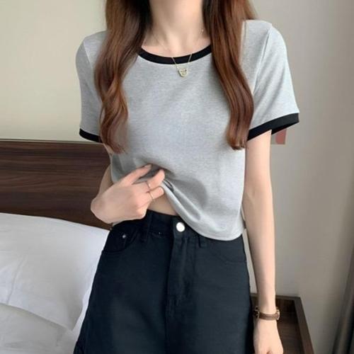 [엄지척]봄 가을 여자티셔츠 배색포인트 크롭 라운드넥 니트티_19659391_667501