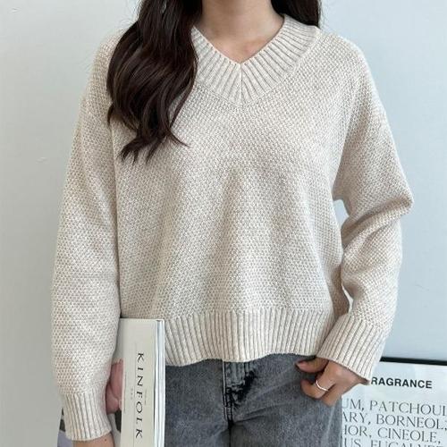 [엄지척]티셔츠 여성니트티 크롭니트 니트 브이넥 골지 가을_19678206_667501