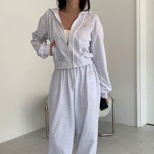 [옷자락] 여성 가을 트레이닝 세트 크롭 후드 집업 와이드 팬츠