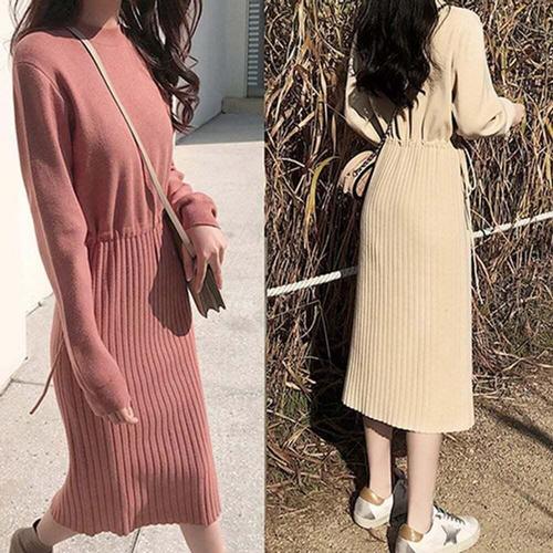 [셀럽하우스]무지 NYWB2293 봄 긴팔원피스 니트원피스 가을롱원피스 봄원피
