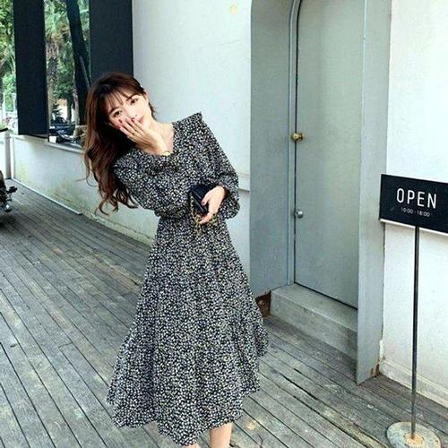 [셀럽하우스]하늘하늘 TNNW2828 꽃무늬 데이트룩 화사한 가을패션 롱 원피스