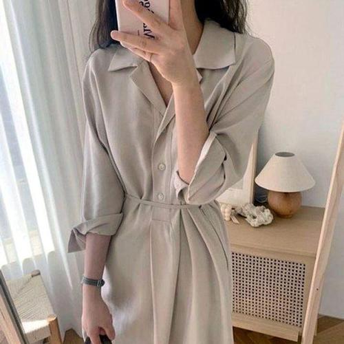 [셀럽하우스]루즈핏 ASRH6772 봄가을 하객코디 원피스 추천 카라 롱 롱원피