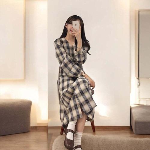 [셀럽하우스]웨이스트 HVOT9149 가을 원피스 여성 체크 롱원피스 은창 루즈