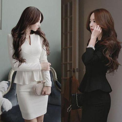 [셀럽하우스]신축 VCSX7887 슬림핏 미니 잘록 쫀쫀한 가을 여성 긴팔 원피스