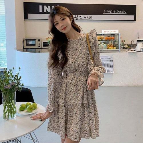 [셀럽하우스]플라워 OUJN8015 여성 미니 프릴 원피스 봄 가을