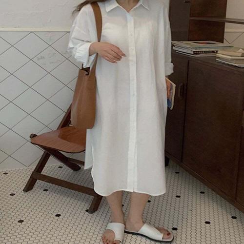 [에이치플러스몰]여성 5컬러 베이직 봄 여름 가을 셔츠원피스 롱원피스