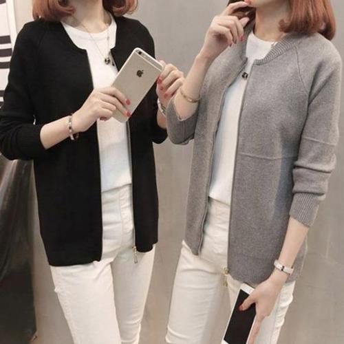 여성용 니트 가디건 더블 지퍼 스탠드 칼라 스웨터 코트 캐주얼 다용도 가을 겨울 신상 한국 스타일