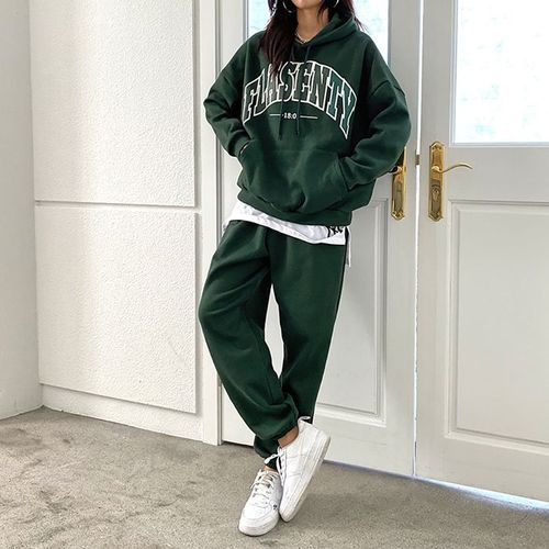 Asure 헐렁헐렁 여성 레저 후드티 롱 바지 트레이닝복 세트 빅 사이즈