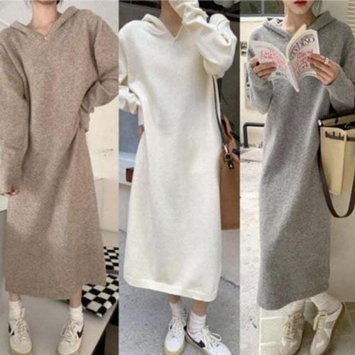 [셀럽하우스]니트 HLQS4127 롱원피스 후드 트렌드 1P 봄가을 데일리 데일리