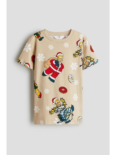 [에이치엔엠] 프린트 코튼 티셔츠 베이지/심슨 가족 1296336019
