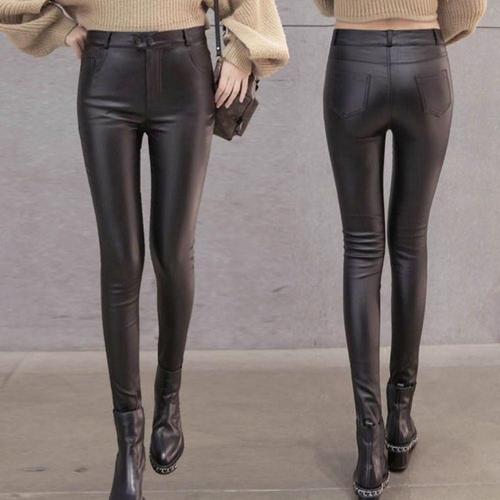 여성 가을겨울 가죽 바지 기모 슬림핏 하이웨이스트 스판 팬츠 Women's leather pants