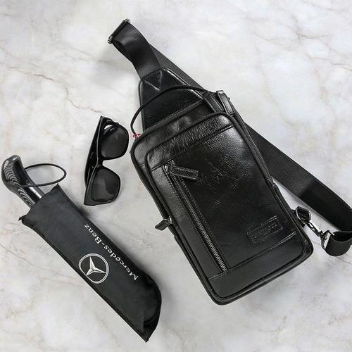 심플 캐주얼 천연 소가죽 힙색 여행용슬링백 남자가방-W9FB4C4