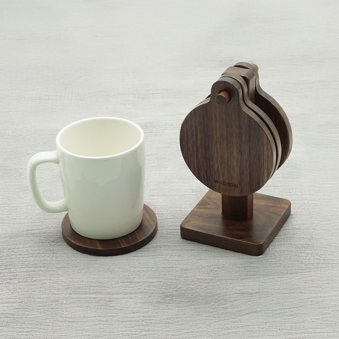블랙월넛 컵받침 4개 세트 티코스터 컵받침대 코스터 거치대 포함 각인