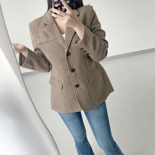 글램핏 / 헤링본 울 루즈핏 어깨 패드 간절기 가을 자켓