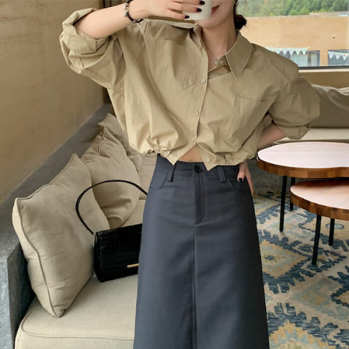 슈팅스타 / 카라넥 루즈핏 크롭 숏 밴딩 어깨패드 간절기 셔츠