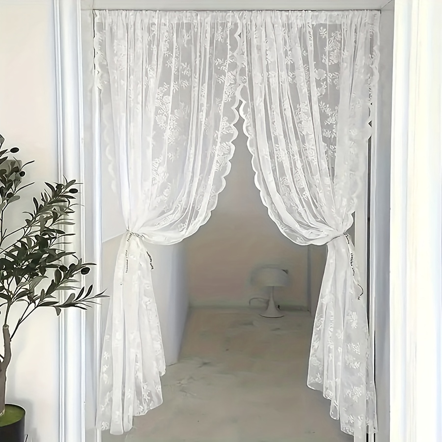 TEMU 1개 고급스럽고 우아한 블랙 솔리드 컬러 문커튼, 웨이브 레이스와 꽃가루 패턴, 자수 반투명 창문 스크린