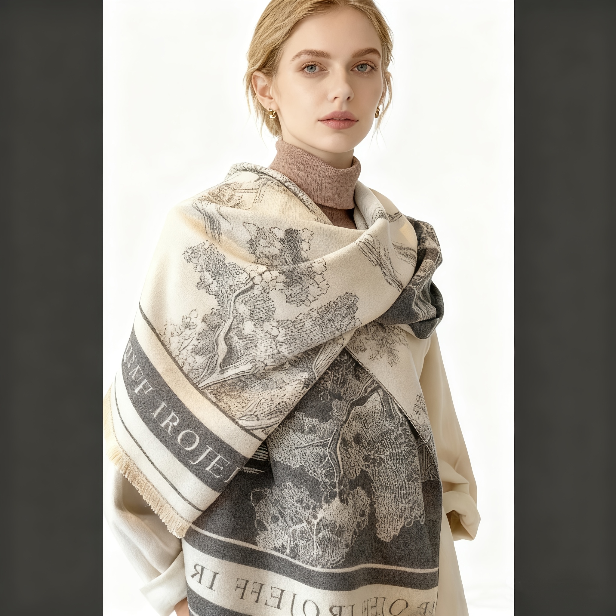 TEMU 숄 스카프 - 가벼운 보온성과 통기성 로마스 프린트 랩, 우아한 스타일의 다용도 아웃도어 액세서리, 파티·페스티벌·여행용 부드러운 커버, 관리 (손세탁/건조)