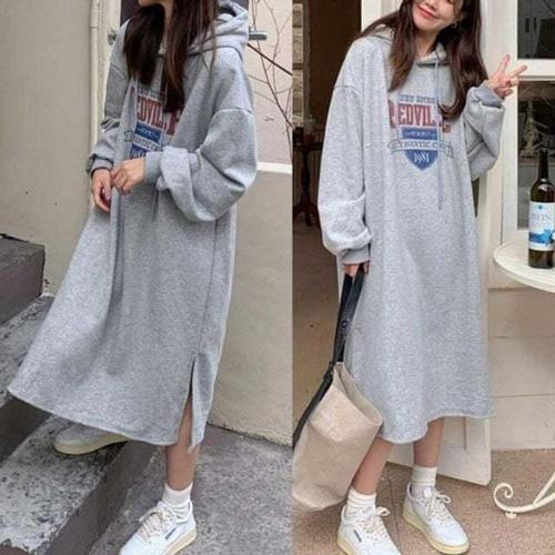 [셀럽하우스]여자 PNPM1191 강아지 산책 집앞 외출 루즈핏 후드 면 원피스