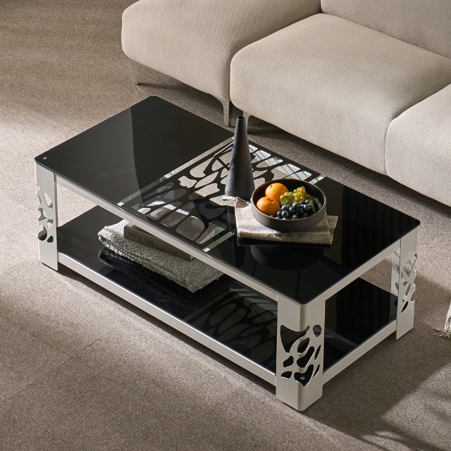 거실 쇼파 테이블 2단 강화유리 원룸 커피 책상, 블랙
