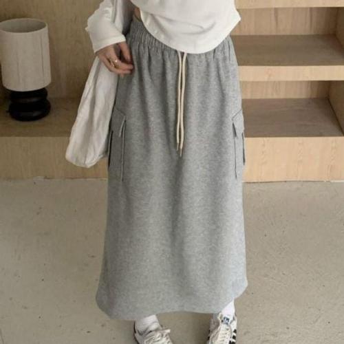 [옷자락]여자 건빵 면원단 랩 주머니 캐쥬얼 스트랩 SS 롱스커트
