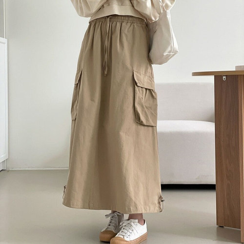 플러리싱 / 캐주얼 사이드 포켓 건빵 롱 스커트 플러리싱