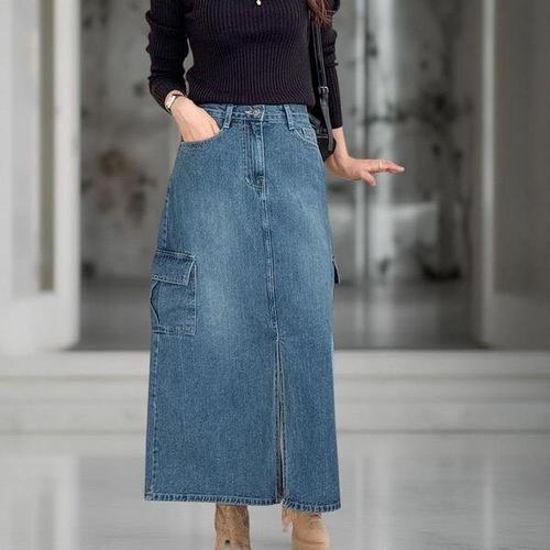 [다잇템_패션]여성 워싱 큰사이즈 건빵 FW 슬릿 롱치마